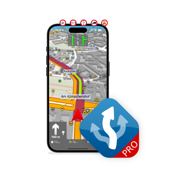 Navigator PRO (LKW-Version) – Professionelle GPS-LKW-Navigation für iPhone, iPad